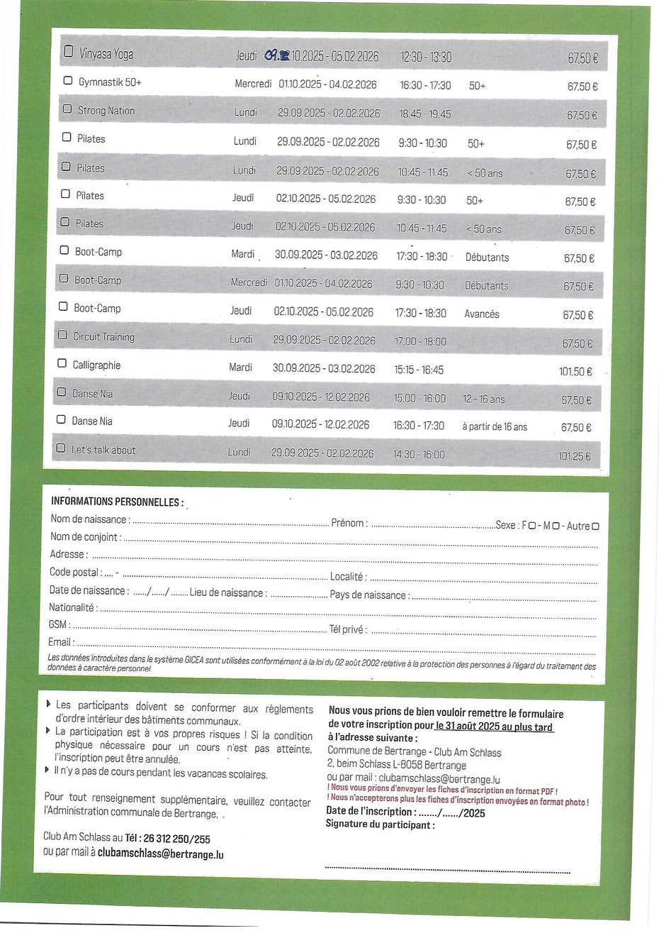 oder per email an: clubamschlass@bertrange.lu